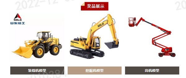 活动结束后,后台统计至少转发朋友圈十天,其中,点赞数前三名的参赛粉丝,送出精美产品模型一套(3个),【挖掘机、装载机、高机各一个】